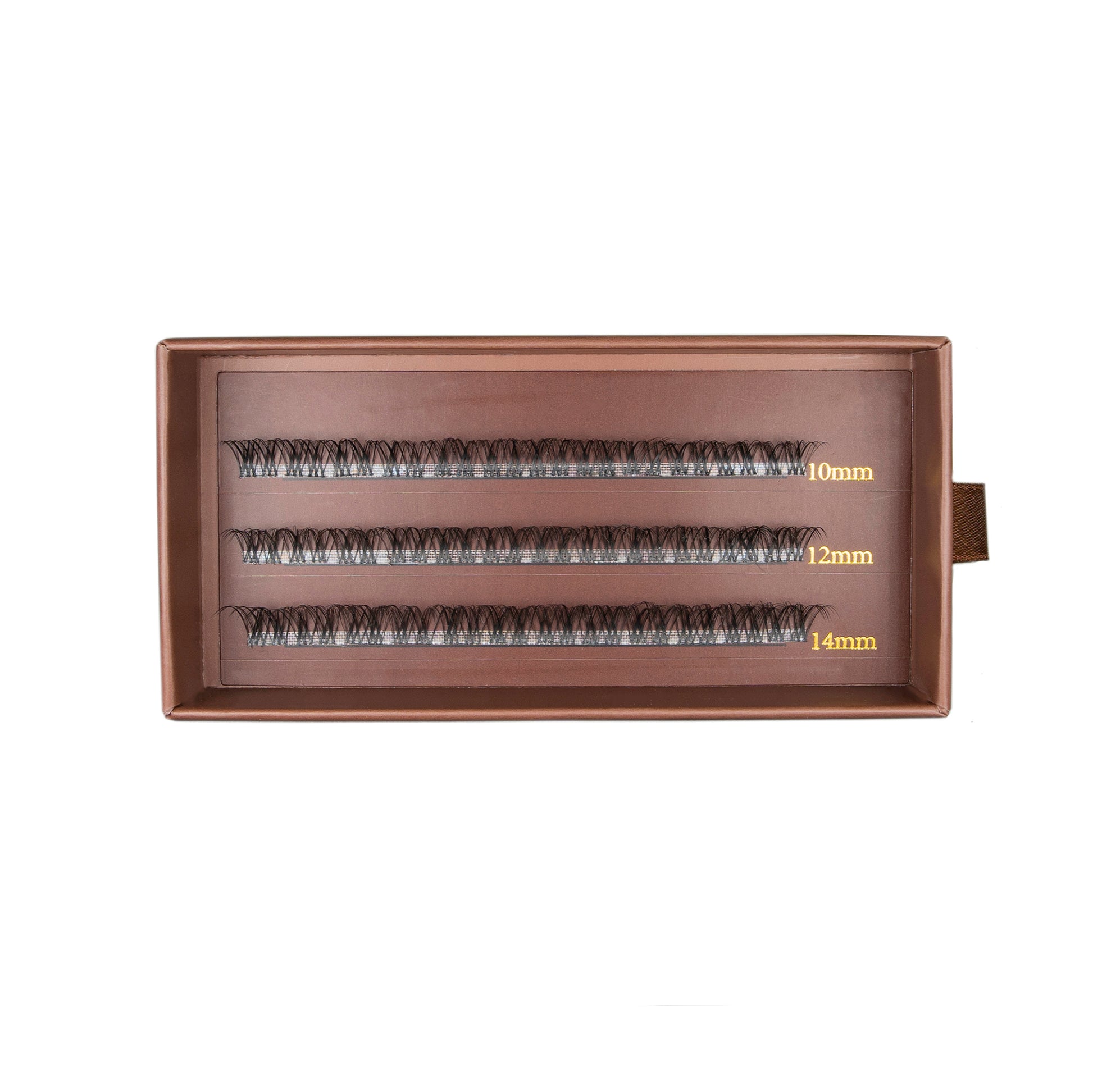 The lash box contains three sizes of lashes - 10mm, 12mm, and 14mm, with 12 cluster of each size. In total, you will receive 36 cluster, allowing you to create your desired lash look or find the most suitable length. The lashes are pre-cut into bouquets, making application even easier.