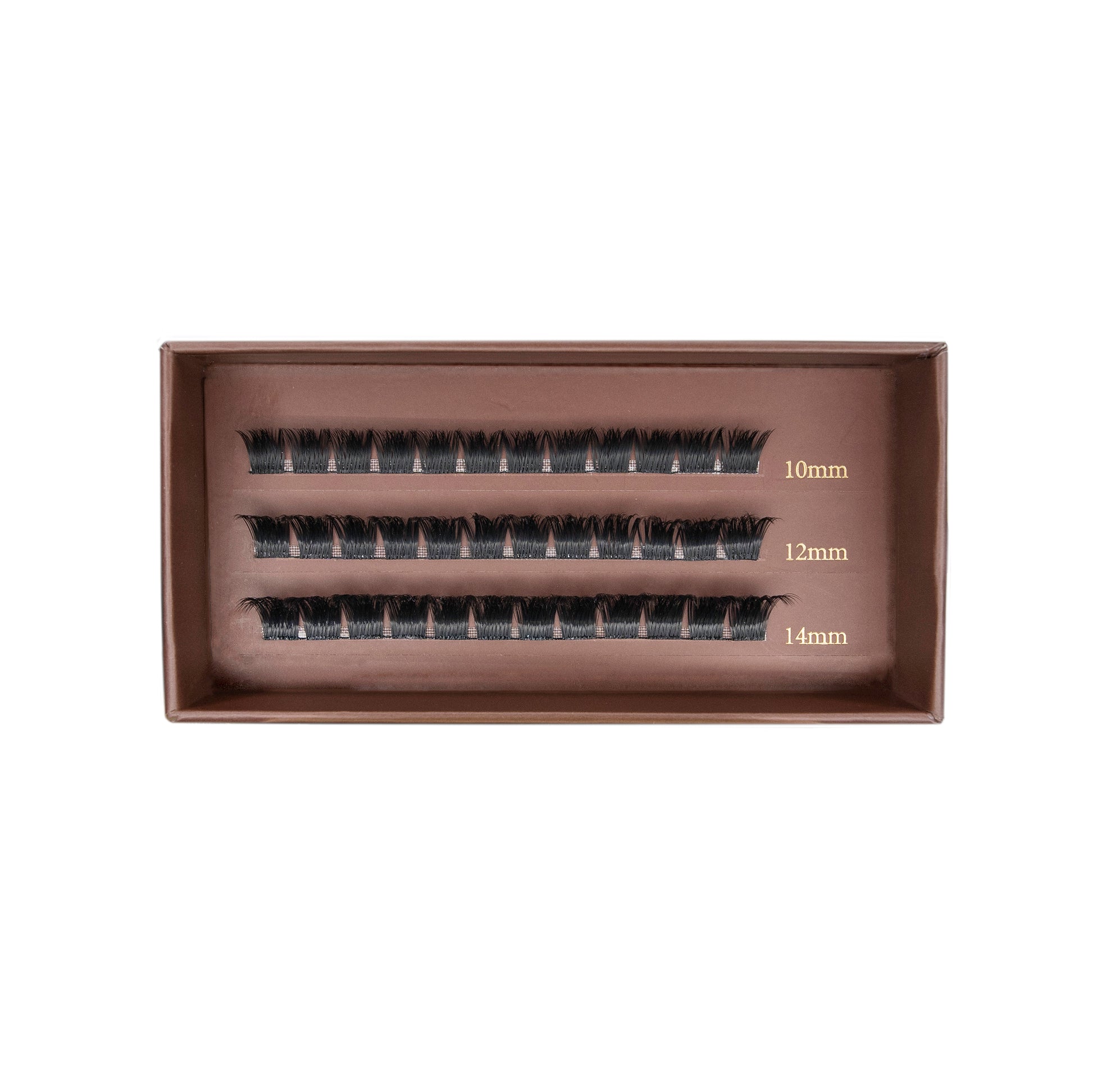 The lash box contains three sizes of lashes - 10mm, 12mm, and 14mm, with 12 cluster of each size. In total, you will receive 36 cluster, allowing you to create your desired lash look or find the most suitable length. The lashes are pre-cut into bouquets, making application even easier.