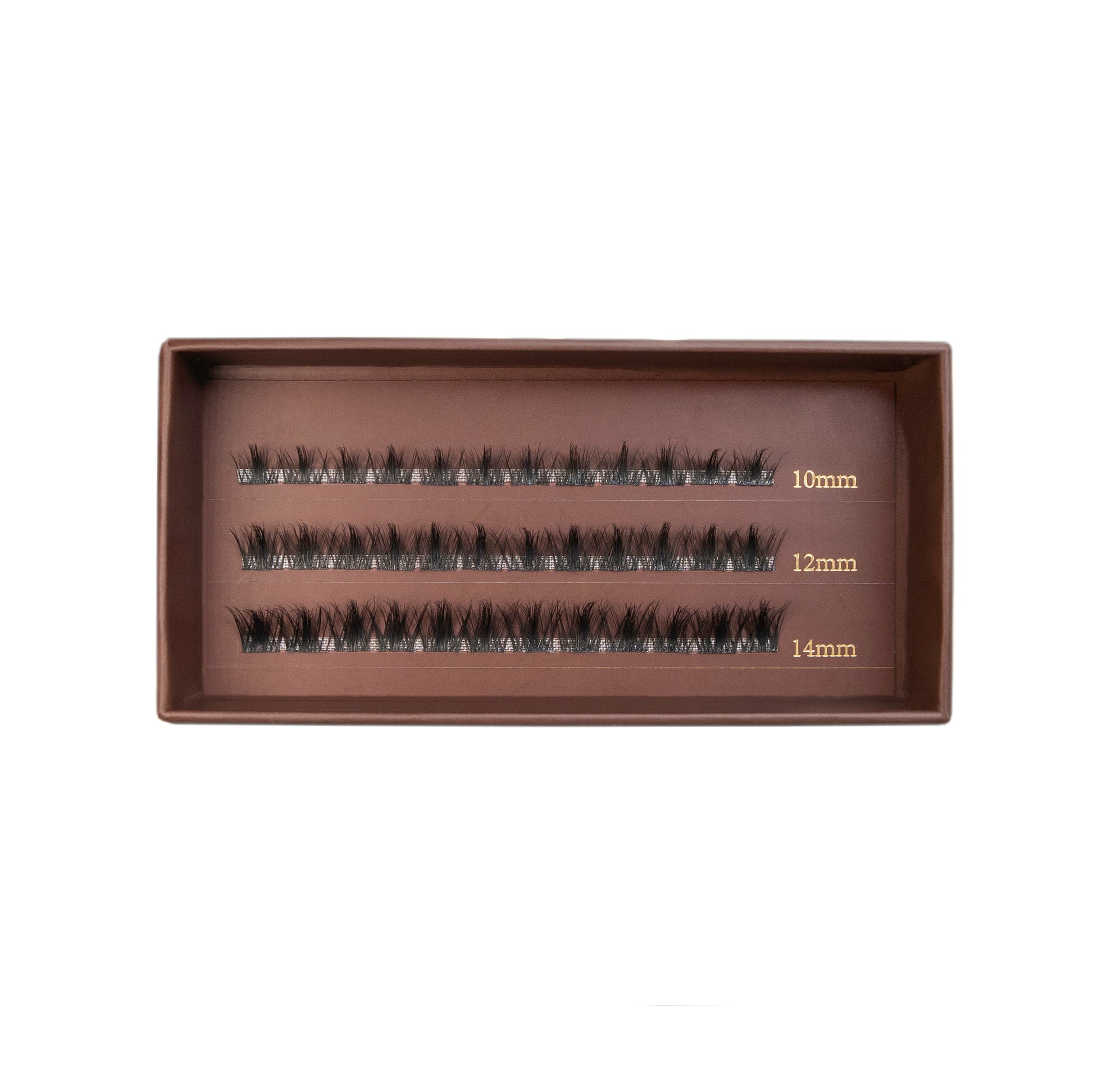 The lash box contains three sizes of lashes - 10mm, 12mm, and 14mm, with 12 clusters of each size. In total, you will receive 36 bouquets, allowing you to create your desired lash look or find the most suitable length. The lashes are pre-cut into clusters, making application even easier.