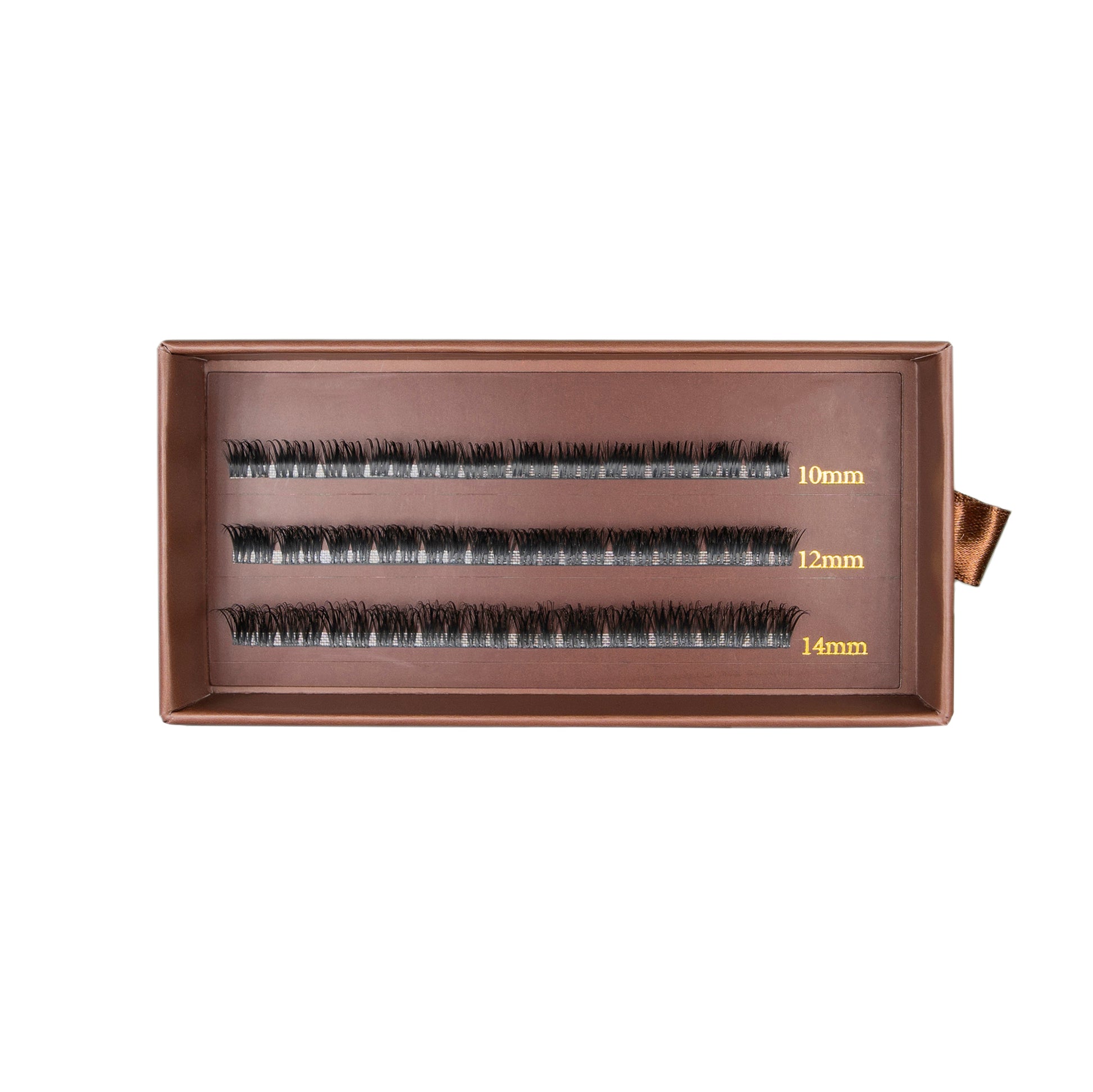 Volume: Medium. The lash box contains three sizes of lashes - 10mm, 12mm, and 14mm, with 12 clusters of each size. In total, you will receive 36 clusters, allowing you to create your desired lash look or find the most suitable length.